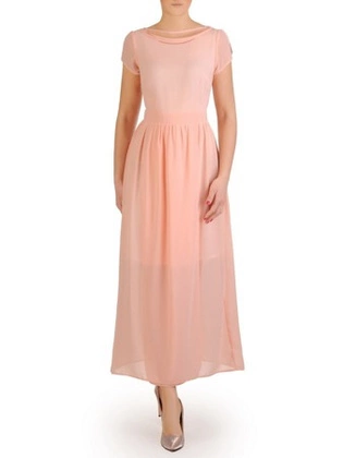 Szyfonowa sukienka maksi, kreacja z ozdobnym dekoltem 29255
