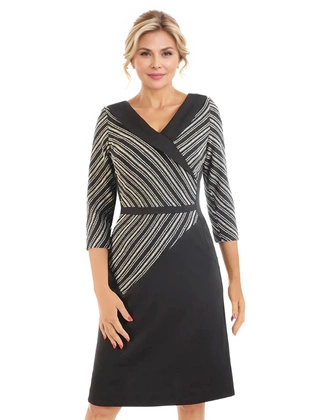 Elegancka sukienka wyszczuplająca, kreacja wyjściowa z ozdobnymi wstawkami 34351
