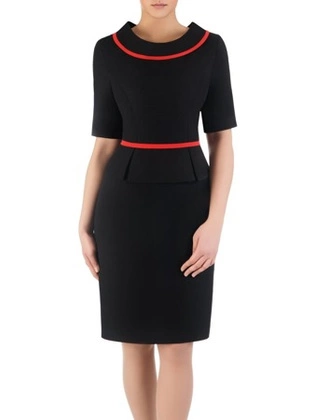 Sukienka damska Jonata II, czarna kreacja z kołnierzem i baskinką.