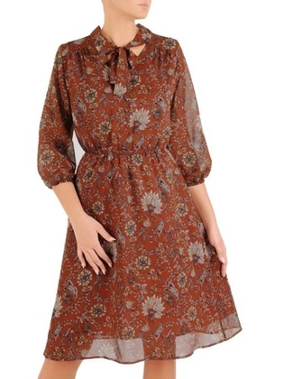 Szyfonowa sukienka z guzikami przy dekolcie, w oryginalnym wzorze 25201