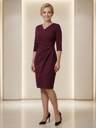 Modna sukienka dla 50-latki wizytowa – matowa midi z dekoltem kopertowym 24853