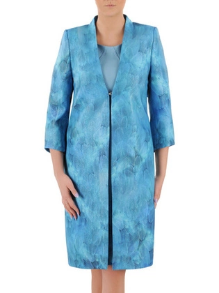 Sukienka wyszczuplająca 2w1, prosta kreacja z luźną, szyfonową narzutką 15383