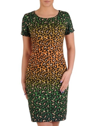Sukienka w cieniowane cętki, prosta kreacja w modnym wzorze 20525.