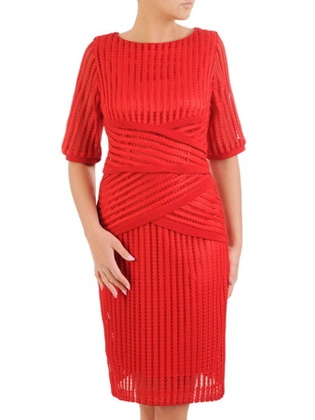 Elegancka, czerwona sukienka damska z koronki 33048