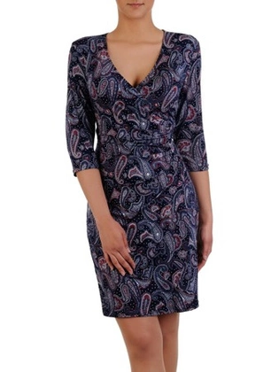 Sukienka z wzorzystą wstawką Gerda, wyszczuplająca kreacja na jesień