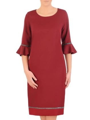 Elegancka bordowa sukienka, kreacja z koronkowymi rękawami 28754