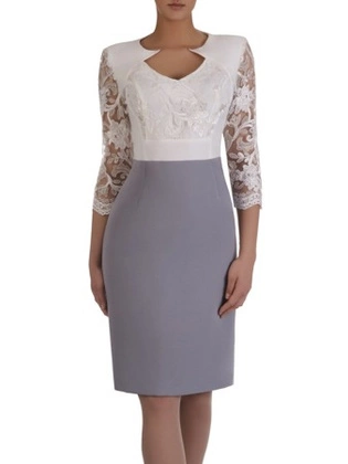 Sukienka wykończona koronką 15745, kreacja z modnym dekoltem.