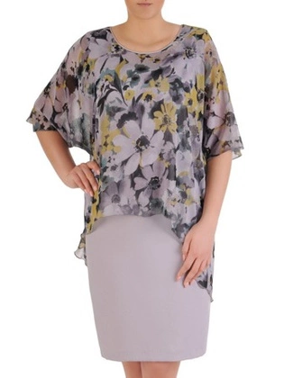 Sukienka wyszczuplająca 2w1 , prosta kreacja z luźną, szyfonową narzutką 15716