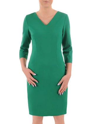 Sukienka damska, prosta z tkaniny, zielona kreacja z dekoltem w serek 37875