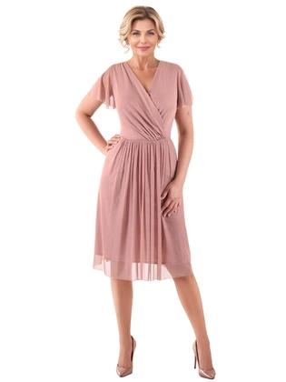 Sukienka wizytowa z kopertowym dekoltem i gumkami na rękawach 35843