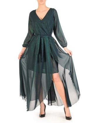 Zielona sukienka damska, połyskująca długa kreacja 29539