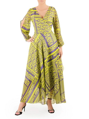 Elegancka sukienka maxi, kreacja z ozdobnymi rozcięciami na rękawach 30019