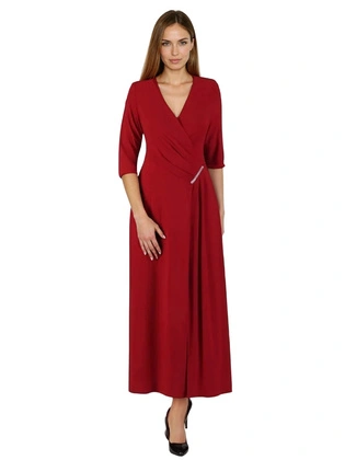 Kopertowa sukienka wyszczuplająca, kreacja z ozdobnymi marszczeniami 31004
