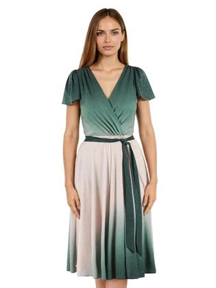 Elegancka zielona sukienka, kreacja z kopertowym dekoltem 30952