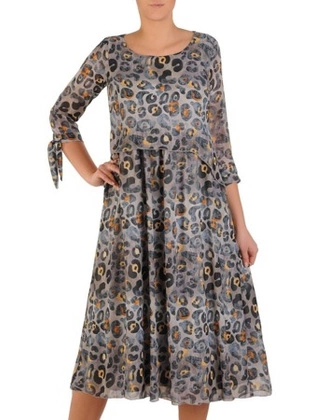 Sukienka damska w panterkę, wizytowa kreacja w luźnym fasonie 28262