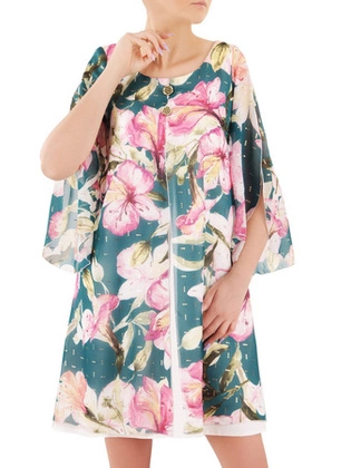 Sukienka z szyfonu, luźna kreacja w kwiaty 33749