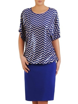 Sukienka z luźnym, połyskującym topem, kreacja maskująca brzuch 24226