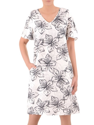 Trapezowa sukienka z szerokim kołnierzem, lekka kreacja z wzorzystego szyfonu 24661