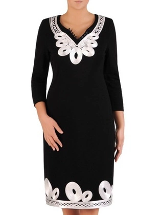 Sukienka z dzianiny, czarna kreacja z kontrastowymi wstawkami 27737