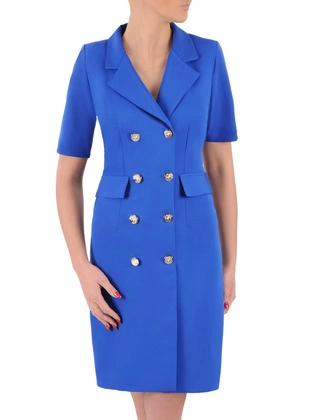 Granatowa sukienka żakietowa z dwurzędowym zapięciem 31069
