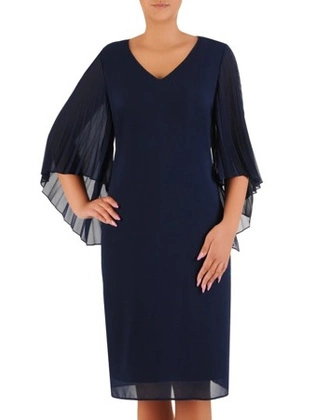 Trapezowa sukienka z szyfonu, kreacja z ozdobnymi mankietami 24279