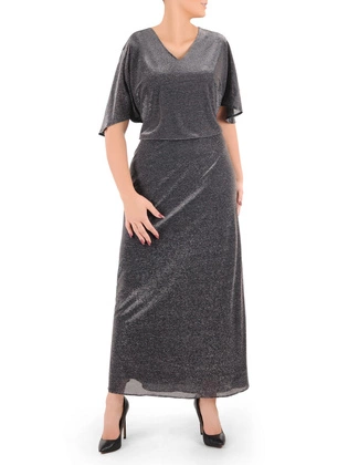 Wieczorowa, kopertowa suknia maxi z połyskującego materiału 34540