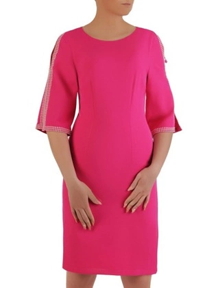 Amarantowa sukienka z efektownie wykończonymi rękawami 20867