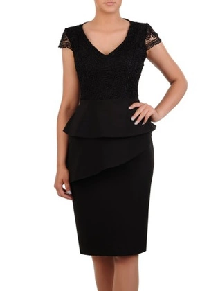Sukienka z podwójną baskinką, elegancka kreacja wizytowa 16730
