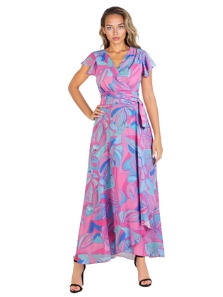 Wieczorowa, kopertowa suknia maxi z połyskującego materiału 31654