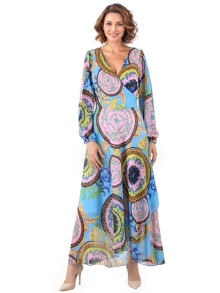 Elegancka sukienka maxi, kreacja z ozdobnymi rozcięciami na rękawach 36142
