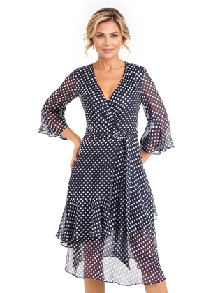 Sukienka w grochy, zwiewna kreacja z szyfonu 26073