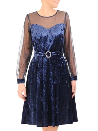 Rozkloszowana sukienka z aksamitu, kreacja z ozdobną klamrą 31720