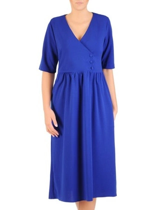 Asymetryczna sukienka z kopertową zakładką, kreacja z guzikami 21352
