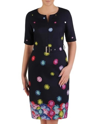 Prosta sukienka z oryginalnym nadrukiem, modna kreacja z paskiem 20502