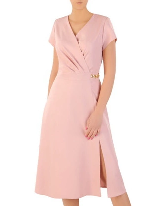 Elegancka, kopertowa sukienka z ozdobnym łańcuszkiem w pasie 33038