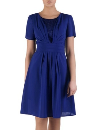 Szyfonowa sukienka z brokatową wstawką Mirandes, chabrowa kreacja na wesele.