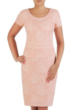 Sukienka wizytowa, elegancka koralowa sukienka z koronki 37706