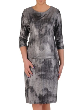 Jesienna sukienka z połyskującej dzianiny, kreacja z kieszeniami 23399