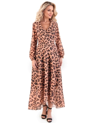 Sukienka damska na lato, elegancka, długa kreacja w kopertowym fasonie 33094