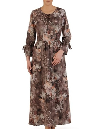 Kwiatowa sukienka w wyszczuplającym fasonie, modna kreacja maxi 24557