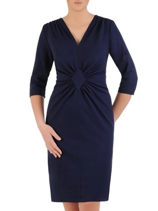 Kopertowa sukienka wyszczuplająca, kreacja z ozdobnymi marszczeniami 34189