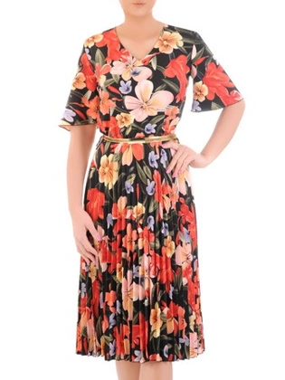 Sukienka w kwiaty, wiosenna kreacja z plisowaną spódnicą 33385