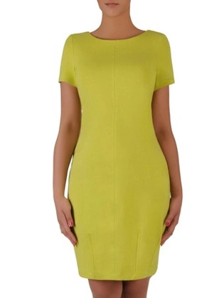 Prosta sukienka z dzianiny z imitacją kołnierza i mankietami 34484