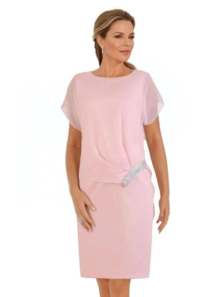 Pudrowa sukienka wyjściowa z ozdobnym marszczeniem 26324