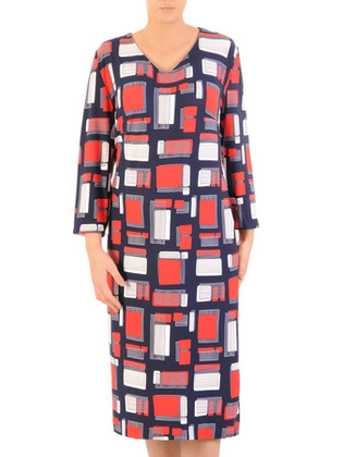 Dzianinowa sukienka z wyszczuplającymi, kontrastowymi paskami 36690