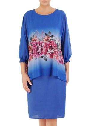 Szyfonowa sukienka z maskującą narzutką i kwiatowym printem 33016