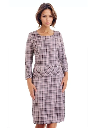 Nowoczesna sukienka z imitacją żakietu 17244, modna kreacja w pepitkę.