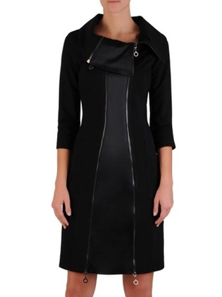 Nowoczesna sukienka z modnym kołnierzem 18566, kreacja z wyszczuplającą wstawką.