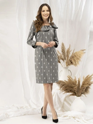 Jesienna sukienka z ozdobną kokardą przy dekolcie 31244