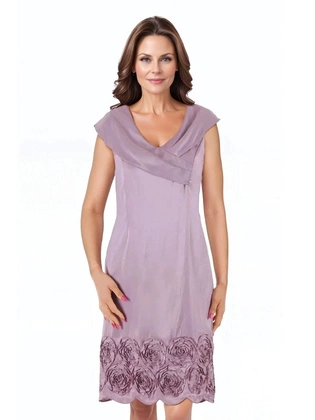 Sukienka na wesele, komunię, wrzosowa kreacja z ozdobnym kołnierzem 36291